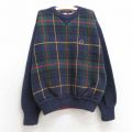 【商品名】 古着 トミーヒルフィガー 長袖 ブランド セーター キッズ ボーイズ 子供服 90年代 90s ワンポイントロゴ コットン クルーネック 紺他 チェック
