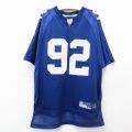 古着 リーボック REEBOK 半袖 ビンテージ フットボール Tシャツ キッズ ボーイズ 子供服 00年代 00s NFL マイケルストレイハン 92 メッシュ地 Vネック 紺他 ネイビー アメフト スーパーボウル 25jun14