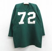 古着 7分袖 ビンテージ フットボール Tシャツ キッズ ボーイズ 子ども服 80年代 80s 72 クルーネック 緑
