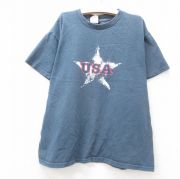 古着 半袖 ビンテージ Tシャツ キッズ ボーイズ 子供服 90年代 90s USAロゴ 星 コットン クルーネック USA製 紺系