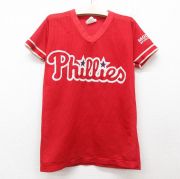 古着 半袖 ビンテージ Tシャツ キッズ ボーイズ 子供服 90年代 90s MLB フィラデルフィアフィリーズ メッシュ地 Vネック USA製 赤 メジャーリーグ ベースボール 野球