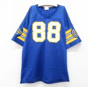 古着 リーボック 半袖 ビンテージ フットボール Tシャツ キッズ ボーイズ 子供服 00年代 00s NFL マイケルストレイハン 92 メッシュ地 Vネック 紺他 アメフト スーパーボウル