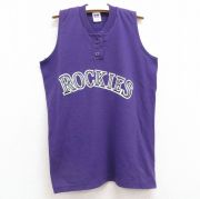 古着 ラッセル ノースリーブ ビンテージ Tシャツ キッズ ボーイズ 子供服 90年代 90s ROCKIES ヘンリーネック USA製 紫