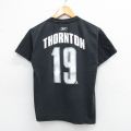 【商品名】 古着 リーボック 半袖 ビンテージ Tシャツ キッズ ボーイズ 子供服 00年代 00s NHL サンノゼシャークス ジョーソーントン 19 コットン クルーネック 黒 アイスホッケー