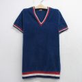 古着 半袖 ビンテージ Tシャツ キッズ ボーイズ 子供服 80年代 80s 無地 パイル地 コットン Vネック 紺 ネイビー 25aug20