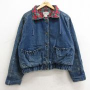 古着 長袖 デニム ジャケット レディース 90年代 90s 大きいサイズ コットン 紺 内側フランネル