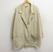 古着 長袖 テーラード ジャケット レディース 90年代 90s 大きいサイズ ロング丈 コットン USA製 ベージュ