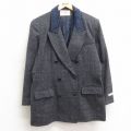 【商品名】 古着 長袖 テーラード ジャケット レディース 90年代 90s 襟レザー ウール デッドストック 濃グレー他 チェック