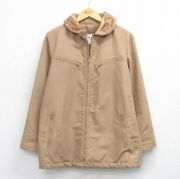 古着 長袖 コート パーカー レディース ロング丈 茶 内側キルティング