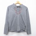 古着 ルート66 長袖 ビンテージ Tシャツ パーカー レディース 00年代 00s 花 刺繍 ラグラン グレー 霜降り 26mar28