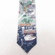 中古 バンヒューセン ネクタイ 90年代 90s ボート 家 シルク USA製 紺他