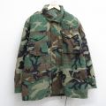 L★古着 長袖 ミリタリー ジャケット メンズ 80年代 80s USアーミー コンバット リップストップ ウッドランドカモ コットン USA製 緑系 迷彩