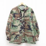 L★古着 長袖 ミリタリー ジャケット メンズ 90年代 90s コンバット ウッドランドカモ USA製 濃緑 迷彩