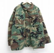 XL★古着 長袖 ミリタリー ジャケット メンズ 80年代 80s コンバット リップストップ ウッドランドカモ コットン USA製 濃緑他 迷彩
