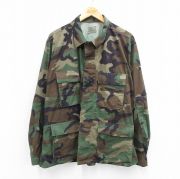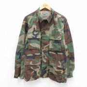 XL★古着 長袖 ミリタリー ジャケット メンズ 90年代 90s コンバット ウッドランドカモ USA製 濃緑他 迷彩