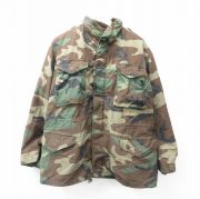 L★古着 長袖 ミリタリー フィールド ジャケット メンズ 80年代 80s M-65 ウッドランドカモ USA製 濃緑他 迷彩 内側キルティング