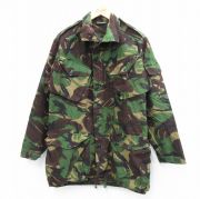 M★古着 長袖 ミリタリー ジャケット メンズ 90年代 90s イギリス軍 コンバット ロング丈 濃緑 迷彩