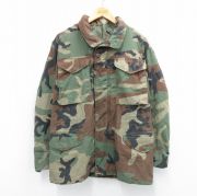 M★古着 長袖 ミリタリー フィールド ジャケット メンズ M-65 ウッドランドカモ 緑 迷彩