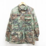 L★古着 長袖 ミリタリー ジャケット メンズ 90年代 90s コンバット ウッドランドカモ USA製 濃緑 迷彩