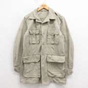 L★古着 長袖 ビンテージ ミリタリー ジャケット メンズ 60年代 60s 開襟 オープンカラー ベージュ