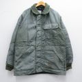 XL★古着 長袖 ジャケット メンズ 大きいサイズ ロング丈 襟レザー 緑