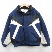 XL★古着 コロンビア 長袖 ナイロン ダウン ジャケット メンズ 90年代 90s 大きいサイズ ロング丈 紺