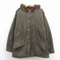 【表記サイズ】 L 【実寸サイズ】 着丈(肩から裾)80cm 着幅(脇から脇)65cm 肩幅60cm 肩袖丈(肩から袖先)63cm 脇袖丈(脇から袖先)57cm 【素材】 コットン、ポリエステル 【程度】 B 【コンディション】 ボタン全て交換、汚れ、フード付け根ボタンなし 【仕入先】 アメリカ 【商品詳細】 中綿はダウンです。 【メール便】 不可