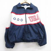 XL★古着 長袖 ナイロン ジャケット メンズ 90年代 90s USAロゴ 大きいサイズ USA製 紺他