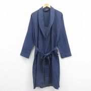 L★古着 マンハッタン 長袖 ガウン メンズ 80年代 80s ロング丈 USA製 紺 ドット