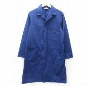 L★古着 長袖 ガウン ショップコート メンズ 80年代 80s ヘリンボーン ロング丈 紺