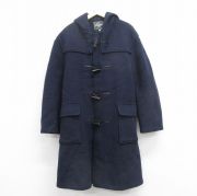 XL★古着 長袖 ウール ダッフル コート パーカー メンズ 90年代 90s 大きいサイズ ロング丈 濃紺 内側キルティング