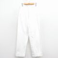【表記サイズ】 なし 【実寸サイズ】 ウエスト(腰まわり)70cm レングス79cm 股上(ウエストから股の付け根)30cm ワタリ幅(股の付け根部分の幅)33cm 裾幅23cm (ウエスト28inch レングス31inch) 【素材】 コットン 【程度】 A 【コンディション】 全体良好 【仕入先】 アメリカ 【メール便】 不可