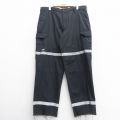 W37★古着 ワーク カーゴ パンツ メンズ リフレクター 黒 ブラック 25mar28 中古 ボトムス ロング