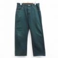 W34★古着 ラングラー Wrangler ジーンズ メンズ ヒゲ コットン 濃緑 グリーン デニム 【spe】 25apr12 中古 ボトムス ジーパン Gパン ロング パンツ