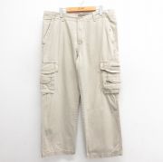 W39★古着 ユニオンベイ カーゴ パンツ メンズ 大きいサイズ コットン 薄ベージュ