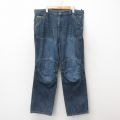 W40★古着 ジーンズ メンズ ダブルニー 大きいサイズ コットン 紺 ネイビー デニム 色むら加工 【spe】 25jun16 中古 ボトムス ジーパン Gパン ロング パンツ