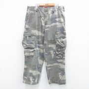 W38★古着 カーゴ パンツ メンズ コットン 濃緑他 迷彩