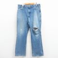 【表記サイズ】 W38 L32 【実寸サイズ】 ウエスト(腰まわり)96cm レングス79cm 股上(ウエストから股の付け根)33cm ワタリ幅(股の付け根部分の幅)33cm 裾幅24cm (ウエスト38inch レングス31inch) 【素材】 コットン 【程度】 C 【コンディション】 破れ、汚れ 【仕入先】 アメリカ 【商品詳細】 USA製。 【メール便】 不可