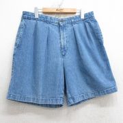 W34★古着 ペリーエリス ショート パンツ ショーツ メンズ コットン 濃茶 デニム