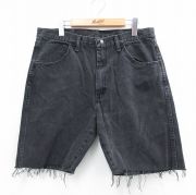 W34★古着 ラングラー ショート パンツ ショーツ メンズ コットン 黒 デニム