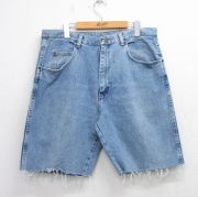 W34★古着 ラングラー ショート パンツ ショーツ メンズ コットン 薄紺 デニム
