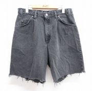 W33★古着 リー Lee ショート パンツ ショーツ メンズ コットン 黒 デニム