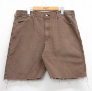 W37★古着 ショート パンツ ショーツ メンズ ダック地 コットン 茶 デニム