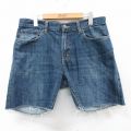 W34★古着 リーバイス Levis 569 ショート パンツ ショーツ メンズ ヒゲ コットン 紺 デニム
