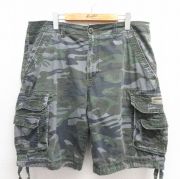W38★古着 ユニオンベイ ショート カーゴ パンツ ショーツ メンズ コットン 緑 迷彩