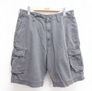 W34★古着 ショート カーゴ パンツ ショーツ メンズ コットン 濃グレー