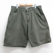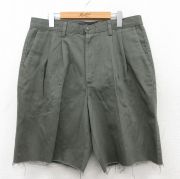 W35★古着 ショート パンツ ショーツ メンズ コットン 緑系