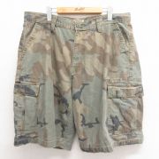 W38★古着 ショート カーゴ パンツ ショーツ メンズ コットン 緑他 迷彩