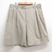 W34★古着 バンヒューセン ショート パンツ ショーツ メンズ リネン ベージュ他 チェック