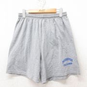 W33★古着 ラッセル ショート イージー パンツ ショーツ メンズ ワンポイントロゴ グレー